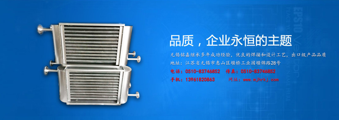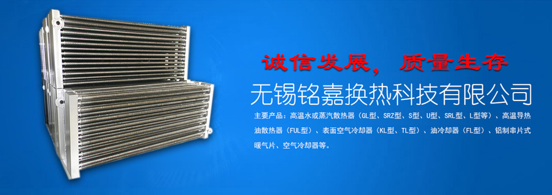 無錫銘嘉換熱科技有限公司是生產散熱器的專業工廠。 產品有:高溫水或蒸汽散熱器、高溫導熱油散熱器表面空氣冷卻器油冷卻器、鋁制串片式暖氣片空氣冷卻器、翅片管換熱器